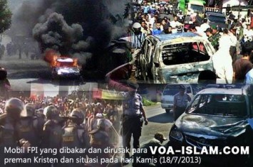Demikian kronologi singkat dan kejadian penganiayaan dan pengeroyokan (kalau di media massa pada umumnya diberitakan “Bentrok FPI vs Warga”) yang dilakukan oleh ratusan preman Kristen Kafir terhadap laskar FPI pada Rabu (17/7/2013) petang.